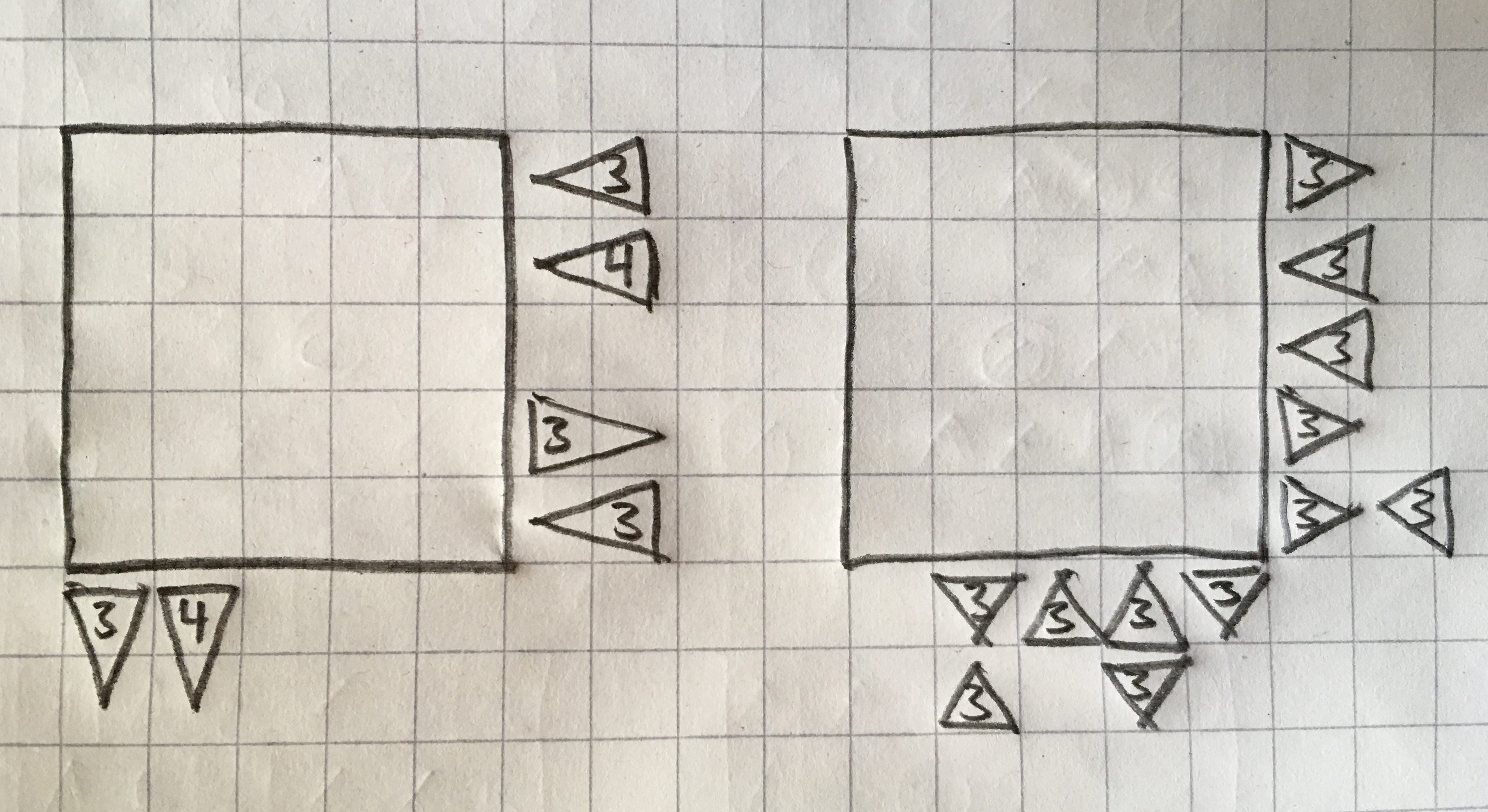 Two more preparation puzzles. This one is probably my favorite take on the “worm rule”, exhibited here for rows and columns without clues. While constructing, it felt like there might be more potential in the type if the order of stalagtites wasn’t given. (The clues here are all 3s and 4s, in case you have trouble deciphering the typesetting.)