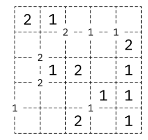 Rules Draw two loops that consist of horizontal and vertical segments. One loop goes along the grid lines, while the other loop goes from cell center to cell center. Clues indicate how many of the (up to) four adjacent edges have an intersection of both loops.