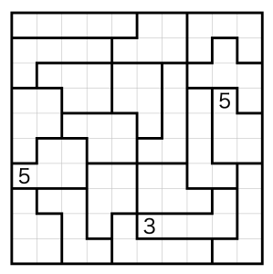 Rules Draw some rectangles, such that every clue is inside a rectangle (of the given size if specified). Different rectangles can only touch by corners, and all rectangles must form a single non-branching loop via these corner-connections. Rectangles without clues are possible. Continue reading