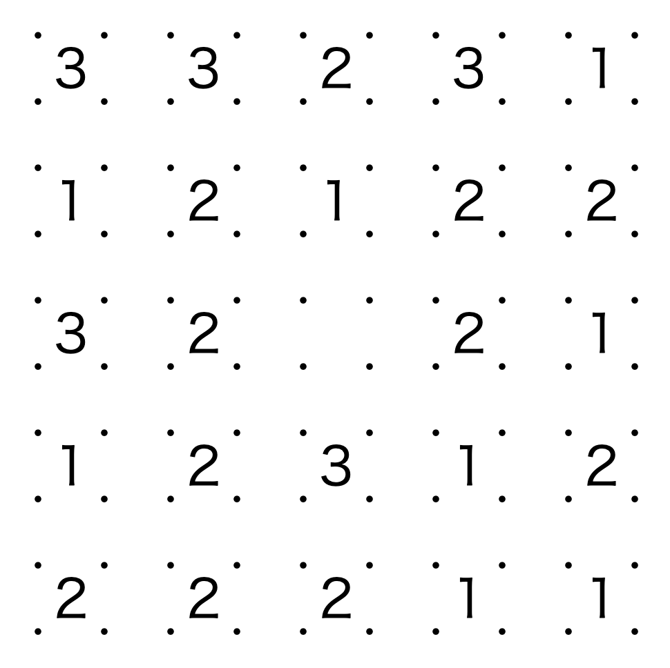 The latest addition is the Nikoli puzzle type Scrin (スクリン); here’s a small sample puzzle: